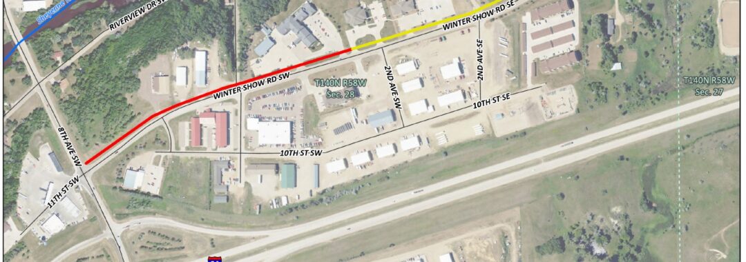 Prior to this project, there were no sidewalks or other pedestrian facilities along this section of Wintershow Road. This area is home to destinations that attract both foot and bicycle traffic, including the Winter Show building, Medicine Wheel Park, apartment complexes, hotels, restaurants, businesses, and a church. Once complete, the path will connect southeast Valley City neighborhoods—including three large apartment complexes—to the existing sidewalk system along 8th Avenue SW. This provides direct, safe access to gas stations, athletic fields, Washington Elementary School, and the Gaukler Family Wellness Center.